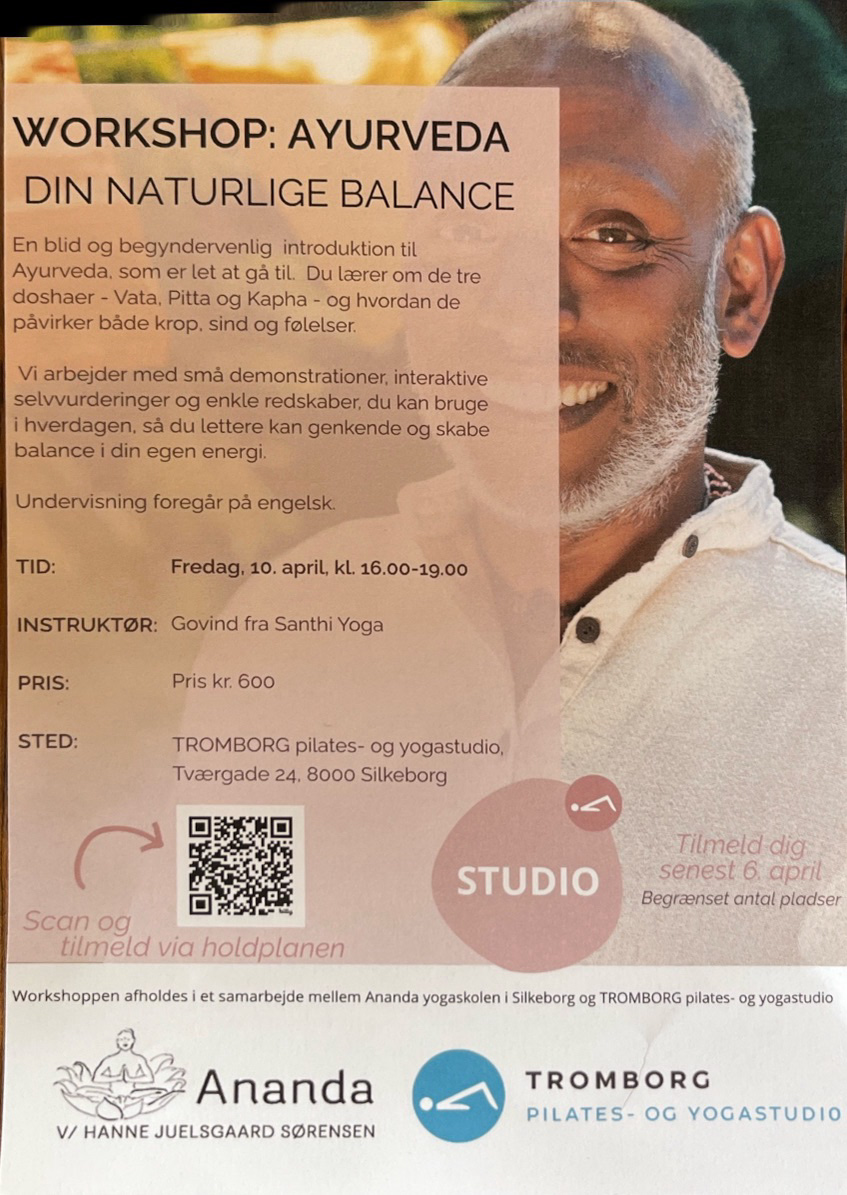 Workshoppen afholdes i et samarbejde mellem Ananda yogaskolen i Silkeborg og TROMBORG pilates- og yogastudio